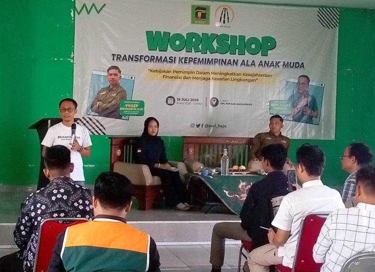 Hal itu ia katakan saat mengisi Workshop Transformasi Kepemimpinan ala Anak Muda dengan tema “Kebijakan Pemimpin dalam Meningkatkan Kesejahteraan Finansial dan Menjaga Keasrian Lingkungan” yang digelar Komunitas Awi Hejo di Sekretariat DPC PPP, Sabtu, (19/7/25).