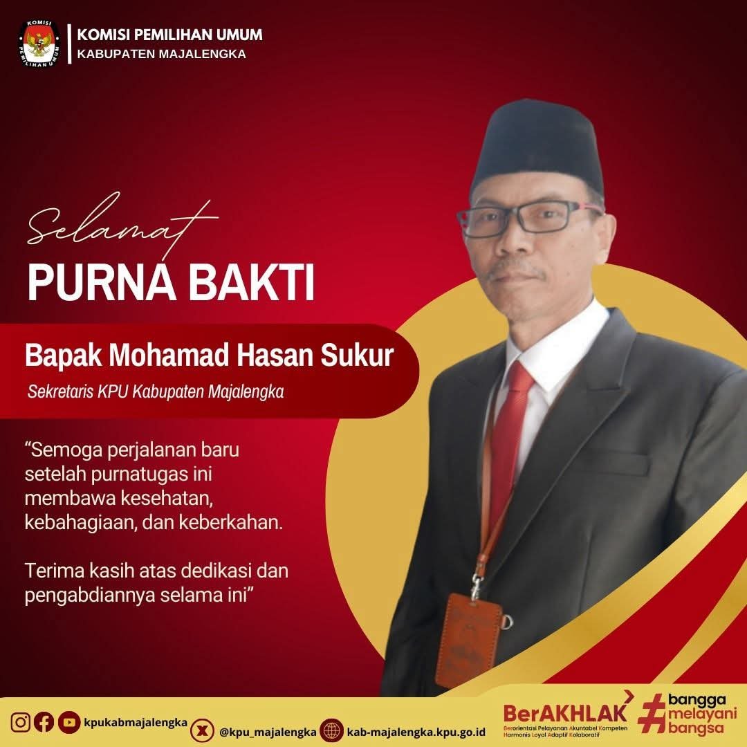 Majalengka, JURNALPOST.CLICK– Dengan penuh hormat dan rasa terima kasih yang mendalam, Keluarga Besar KPU Kabupaten Majalengka, mengucapkan selamat purna tugas kepada Mohamad Hasan Sukur, Sekretaris KPU Kabupaten Majalengka.