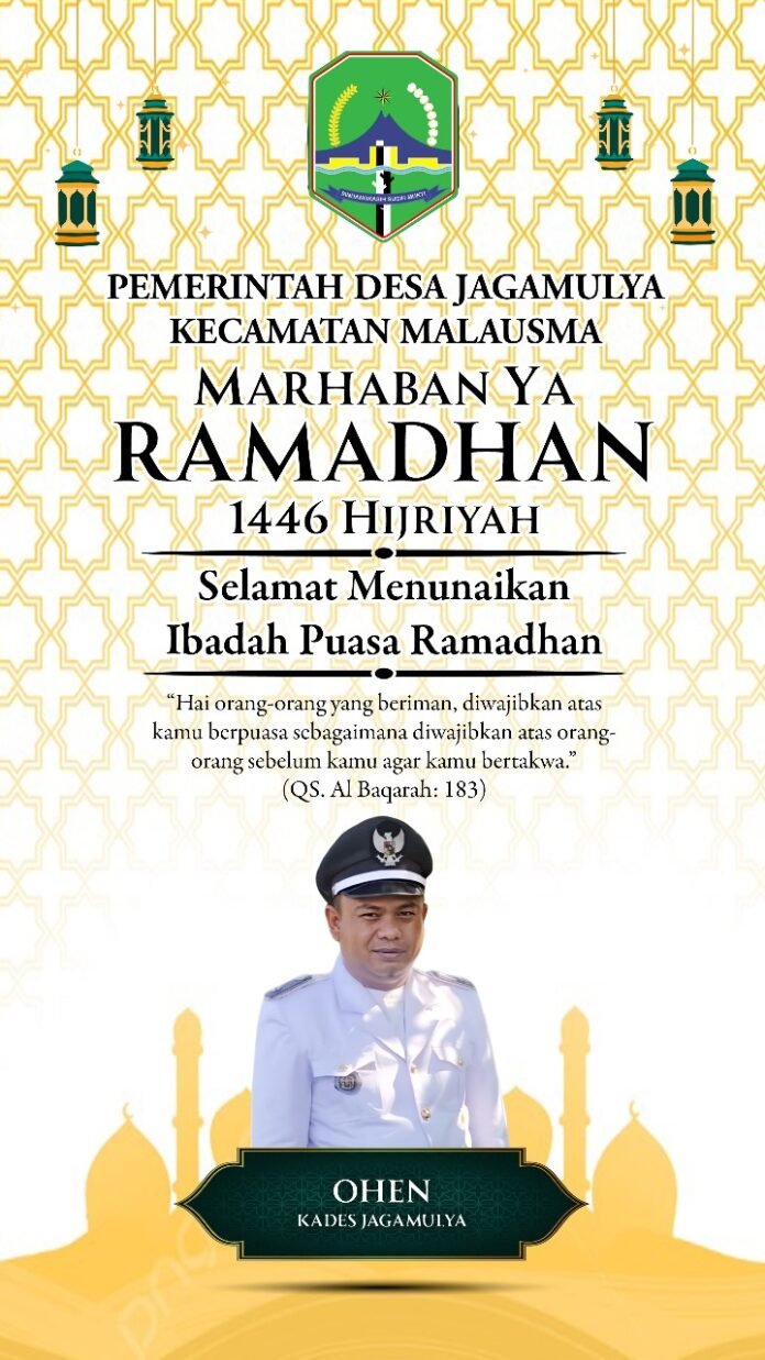 Majalengka, Jurnalpost.CLICK– Pemerintah Desa Jagamulya, Kecamatan Malausma, Kabupaten Majalengka melalui Kades, Ohen mengucapkan “Marhaban Ya Ramadhan 1446 Hijriah/2025”.