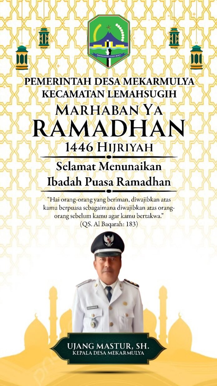 Majalengka, Jurnalpost.CLICK– Pemerintah Desa Mekarmulya, Kecamatan Lemahsugih, Kabupaten Majalengka melalui Kepala Desa, Ujang Mastur, S.H mengucapkan “Selamat Ibadah Puasa” 1446 Hijriah/2025.
