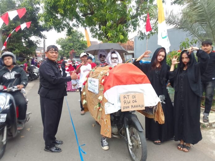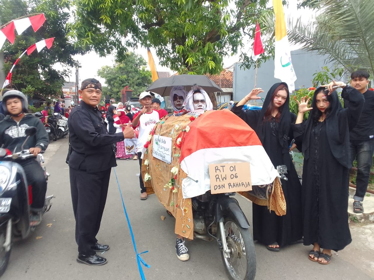 Iring-iringan peserta karnaval yang digawangi Ketua RW, Ruslan Abdul Gani didampingi Jojo Sukarja, Ketua RT 01 serta Aep Saepulloh, Ketua RT 02 menampilkan berbagai kreasi anak bangsa.
